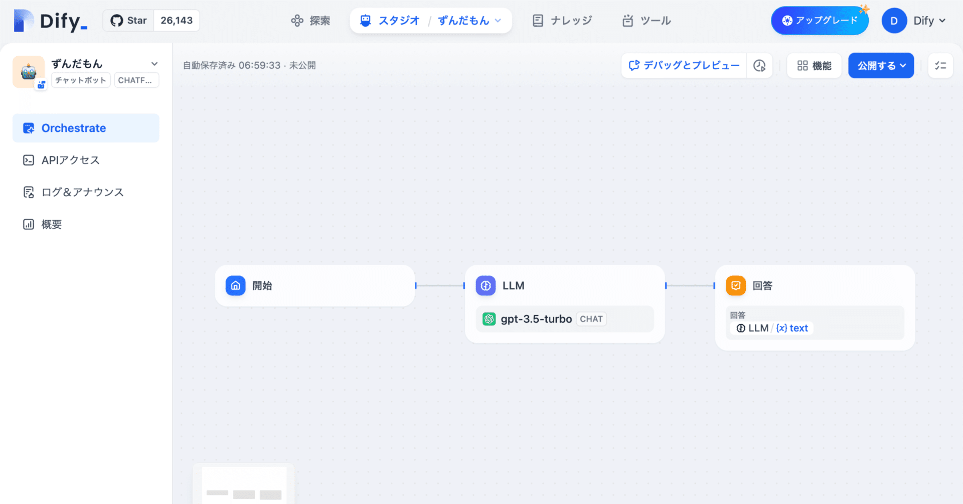 - 基本节点: “开始”、“结束”、“回答”、“LLM”、“知识获取”、“应用程序”(即将发布)。